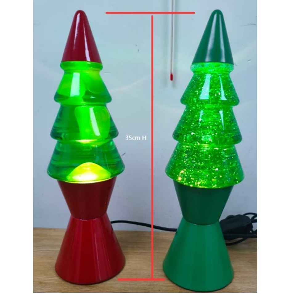 KS-1802 Christmas Shape Lava Lamp Color: red/green Material:Metal 、Glass Size: 10 x 10 x 35cm Weight: 1.26 kg Power Cable 120v Bulb: E17 R39 30W