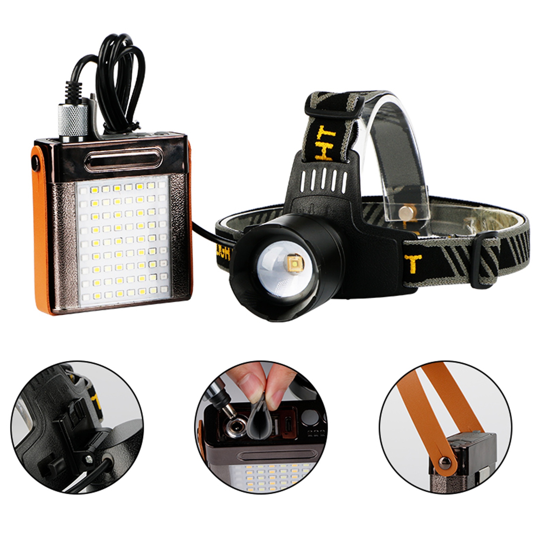 High Power Rechargeable Zoomable Headlamp with seperated battery supply